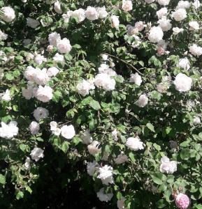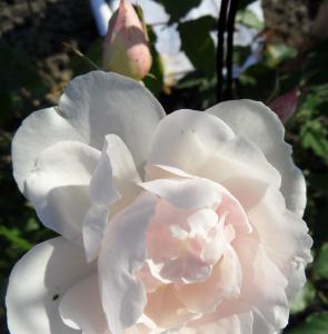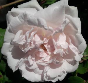In zartrosa bis weiß mit lachsrosa-gelblichen Schimmer zeigen sich mehrmals die wunderbar duftenden großen edlen Blüten an stachellosen Trieben. Das Laub ist dicht und robust. Die Rose kann auch in Halbschattenbereichen stehen, blüht aber umso üppiger je heller der Platz ist.. Mme. Alfred Carriere wächst imposant wie ein Rambler 5m hoch. Wegen ihrer relativ guten Winterhärte für Noisetterosen ist sie in unseren Breiten am bekanntesten und beliebtesten. Sie ist auch eine unserer Lieblingsrosen!