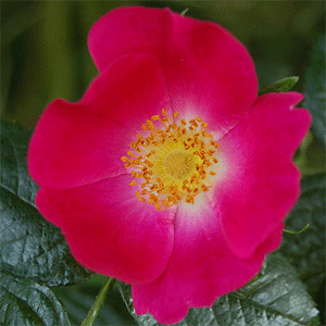 Diese wunderschöne und robuste Hundsrose beeindruckt durch ihre reiche und frühe Blüte. Die großen rot-violetten Blüten stehen im auffallenden Kontrast zu den für Wildrosen ungewöhnlich satten Grün der Laubblätter. Sie ist wenig bestachelt, bildet einen aufrecht überhängenden ansehnlichen Strauch von 2-3 m und besticht im Herbst noch einmal durch ihren haltbaren Hagebuttenschmuck. Sie gehört zu unseren Lieblingsrosen ! Eben eine tolle Hagebuttenrose !