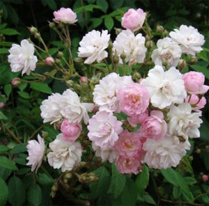 Eine reich blühende wunderschöne Rose für kleine Bäume, Zäune, Mauern, Pergolen , Hauswände oder Rosenbögen in einem Farbspiel von rosa bis weiß. Sie ist schön verzweigt und wächst bis zu 4 m.