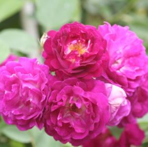 Diese mit einer Goldmedaille ausgezeichnete kleine Ramblerrose blüht in einer außergewöhnlichen rotvioletten Farbe von Juni bis Oktober und duftet auch.. Sie ist zudem sehr bienenfreundlich und frosthart . Auch im Halbschatten gedeiht sie noch prächtig an Rosenbögen, Wänden oder Pergolen. Das Laub ist gesund.