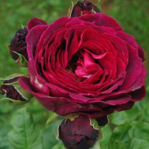 Samtig bordeauxrote gefüllte Blüten mit einem starken Duft erinnern an historische Strauchrose, dabei ist diese gesunde Rose eine mehrfach ausgezeichnete neuere Duftrosen-Züchtung.Sie wächst breitbuschig bis zu einer Höhe von 120-150 cm.Wir lieben sie sehr !