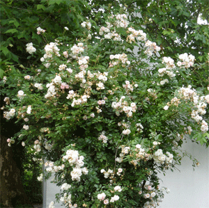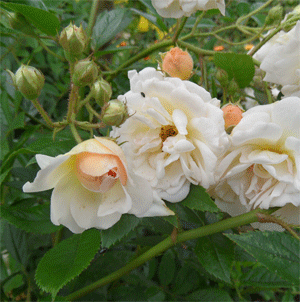 Eine sehr reich blühende und leuchtkräftige Rose, deren zunächst gelbe Blüten sich aus apricotfarbenen Knospen entfalten und schließlich cremeweiß aufhellen. Kaum eine andere Rose entfaltet solch ein Farbenspiel. Die Blüten sind mittelgroß mit orangegelben Staubgefäßen. Sie blüht öfter im Sommer in zahlreichen Büscheln und wird ca. 2,5 - 4 m hoch. Die Triebe sind fast stachellos. Eine schöne Rose für Bögen, Mauern, Zäune u.ä. Der Standort sollte nicht zu trocken sein, sie mag lieber feuchte Erde. Diese Rose eignet sich auch gut für die Kübelbepflanzung.