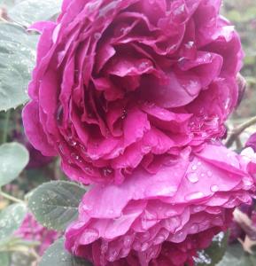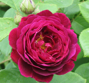 Eine robuste Rose mit dunkelroten bis purpurvioletten Blüten und auffallend großen Staubgefäßen, die im Sommer überreich in Büscheln blüht und im Herbst auffallend große Hagebutten zeigt. Sie wird also gern von Insekten angeflogen. Die mittelgroßen Blüten duften leicht. Der gesunde schöne Strauch wird ca. 1,8 m groß und kann auch für die Heckenbepflanzung genutzt werden. Eine wunderbare gesunde Rose !