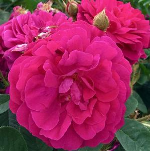 Die Knospen dieser Moosrose sind wundervoll bemoost und entfalten sich dann zu halbgefüllten rosa- bis violettroten duftenden Blüten. Die Rose wächst aufrecht und kann auch im Halbschatten stehen.