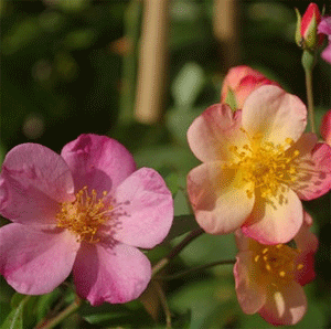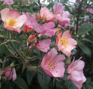 Diese außergewöhnliche Moschusrose mit Wildrosenflair besticht durch ihr Farbspiel in lachs, orange, pink, rosa, weiß-gelb zwischen Juni und Oktober .Viele bunte , exotisch anmutende Blüten, als wären viele Schmetterlinge unterwegs,und später noch die Hagebutten , das ist Plaisanterie. Die Rose ist durch ihre ungefüllten Blüten für Insekten interessant. Sie ist frosthärter als ihre Elternpflanze Mutabilis, aber genau so wunderschön. Man kann sie auch als Kletterrose wachsen lassen bis ca 3m hoch. Eine Lieblingsrose von uns !