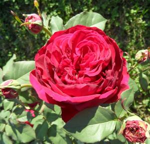 In samtig Purpur-violett bis Weinrot erscheinen die stark duftenden nostalgisch gefüllten Blüten dieser bezaubernden Rose. Sie kann wie eine Duftrose am Sitzplatz gepflanzt , auch im Kübel stehen und zum Vasenschnitt verwendet werden.