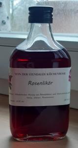 Ein wahrlich feiner Tropfen aus einem alkoholischen Auszug aus Uckermärker Küchenrosen- und Klatschmohnblüten, Rosenwasser, Honig und Wasser.