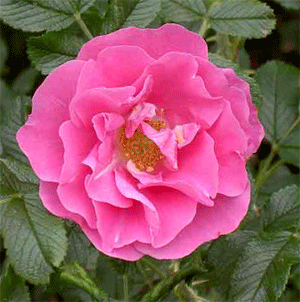 Schalenförmige lilarosa halbgefüllte Blüten mit gelben Staubgefäßen zieren immer wieder diesen robusten aufrecht breitbuschigen Strauch. Eine gute Rose für Rosenanfänger und Heckenpflanzungen.